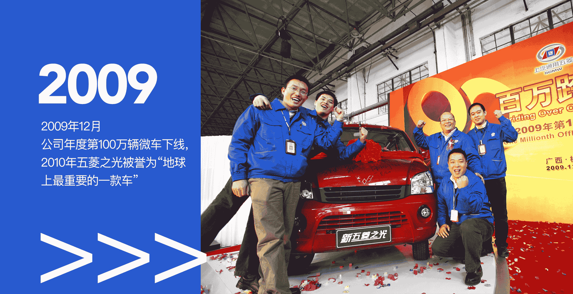 为了让企业能持续健康发展、闯开更大天地,在自治区党委政府“不求拥有,但求所在”理念的指引下,柳州微型汽车厂与上汽集团、美国通用汽车达成合资协议,组建了新的合资公司。2002年,上汽通用五菱汽车股份有限公司正式成立,这也开创了汽车行业 “中中外” 合资模式的先河。